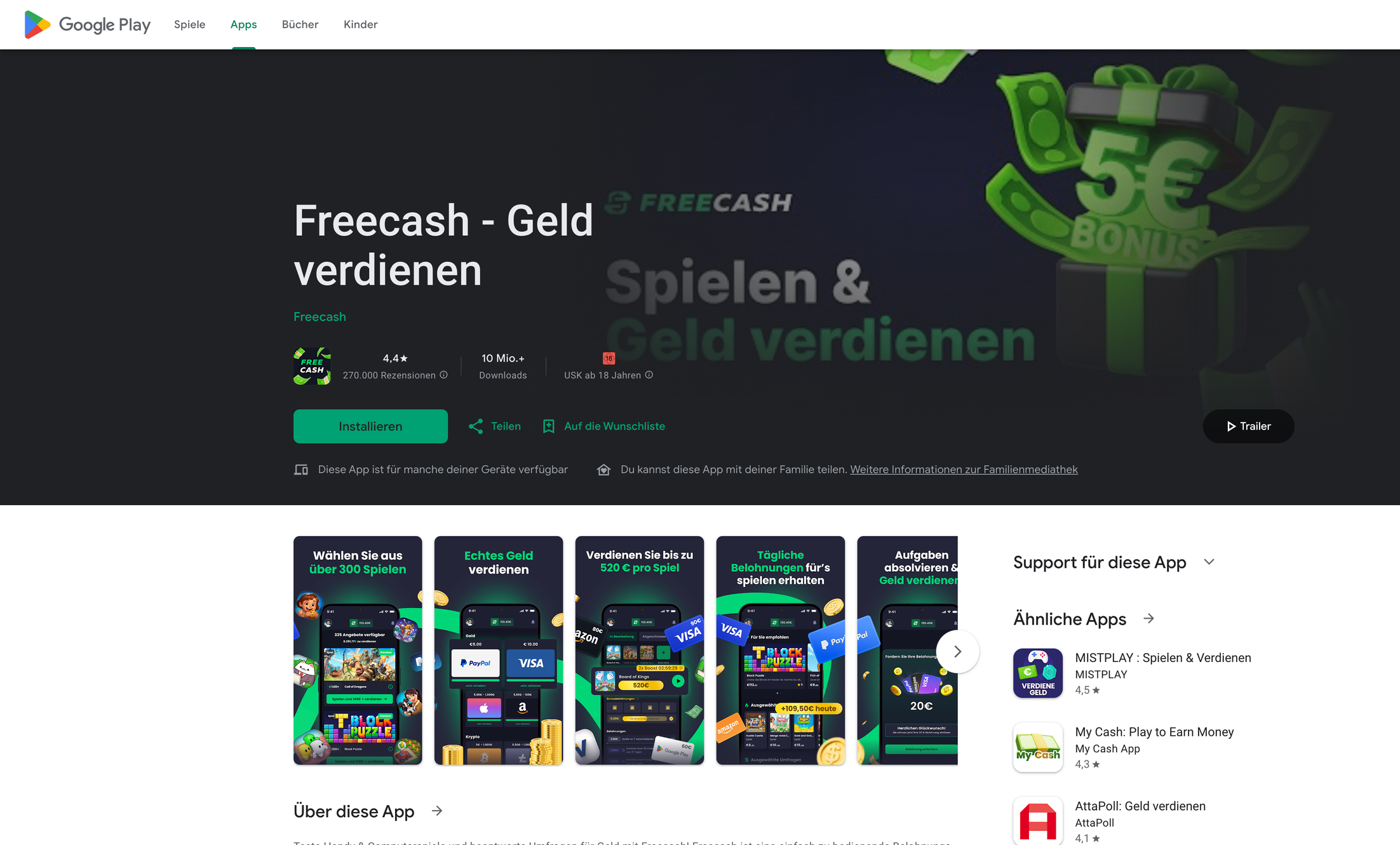 Designed Google Play Store screenshots for FreeCash to showcase the app’s features in a fun and engaging way, encouraging users to download and explore the app’s games and rewards.