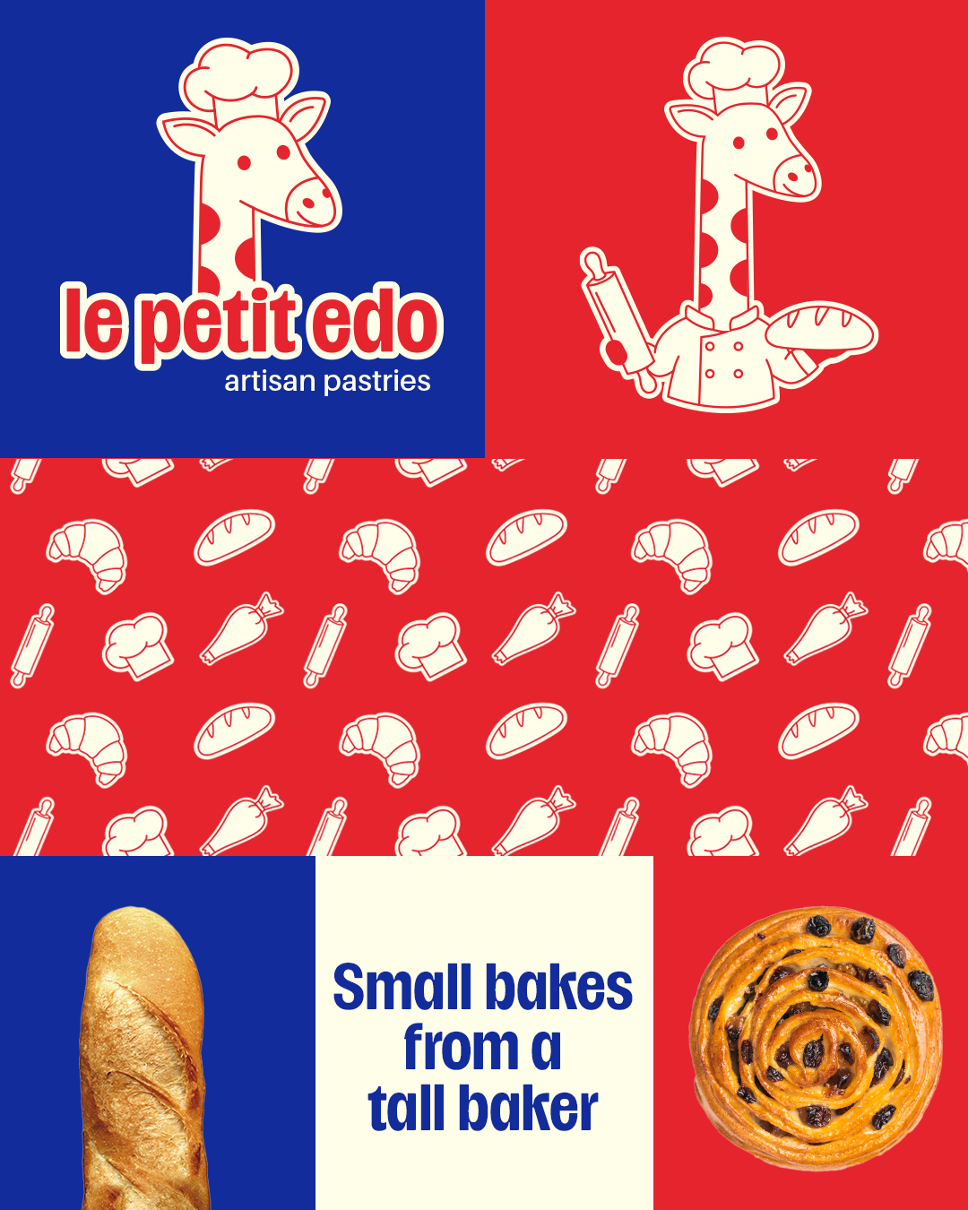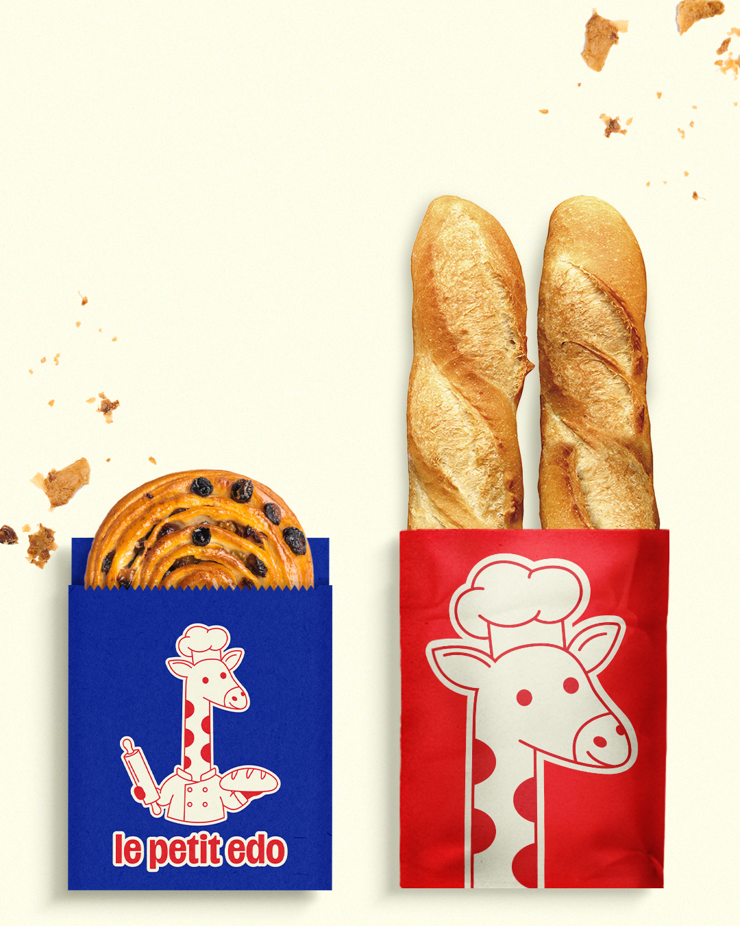 Le Petit Edo is an artisan bakery where playful spirit meets thoughtful craftsmanship. The giraffe mascot reflects the brand’s philosophy: keeping standards high while staying grounded and closely connected to the community.